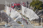 Title: Artwork collapses before illumination event in Kobe